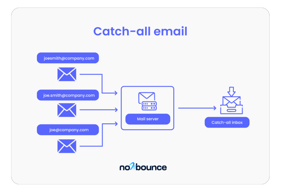 When a company configures its email server with catch-all functionality, the server accepts incoming mail for any address pattern at that domain. There's no immediate rejection for non-existent mailboxes.